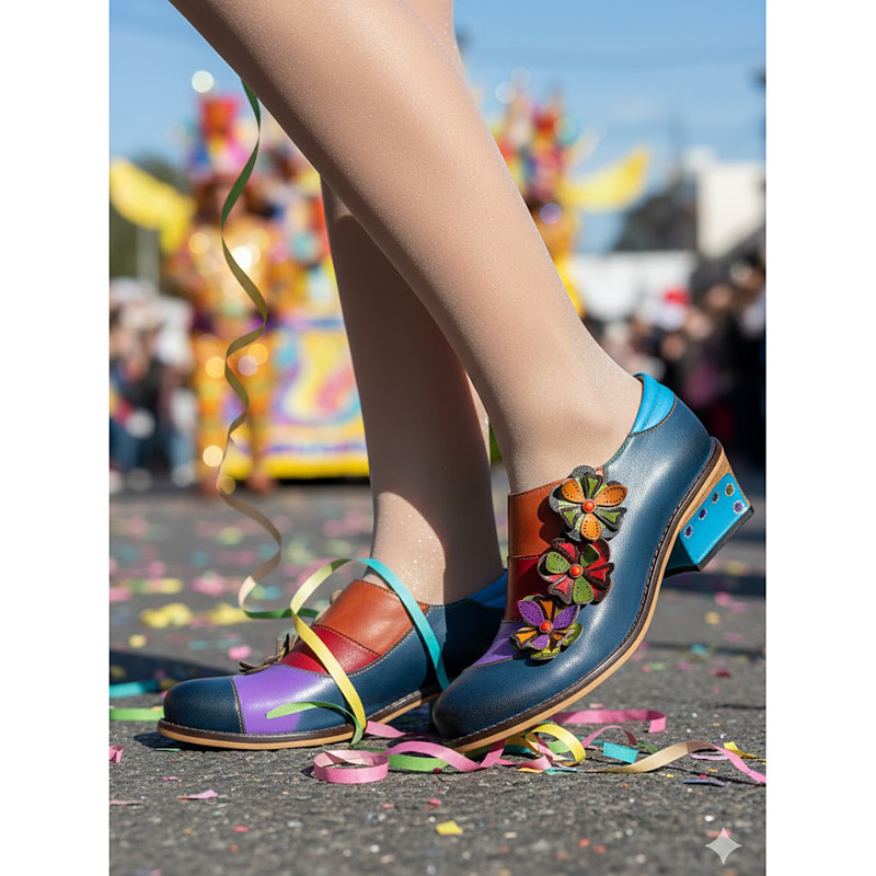 Women's Rainbow Embellished Floral Platform Boots - Trendy Carnival Footwear with Bold Color Glitz