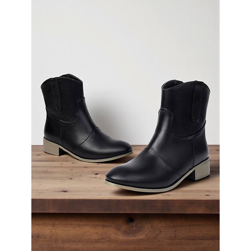 Women's Wine Red Faux Leather Ankle Boots – Casual Western Style Low Heel Short Boots for Work, Travel and Everyday Outfits