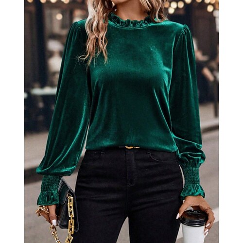 Per donna Velluto Elegant Elegante Blusa Semplice Vintage Elegante Manica Lunga Girocollo Top Regolari Quotidiano Ferie Uscire Arricciato Verde militare Blu Verde Rosa Autunno Inverno