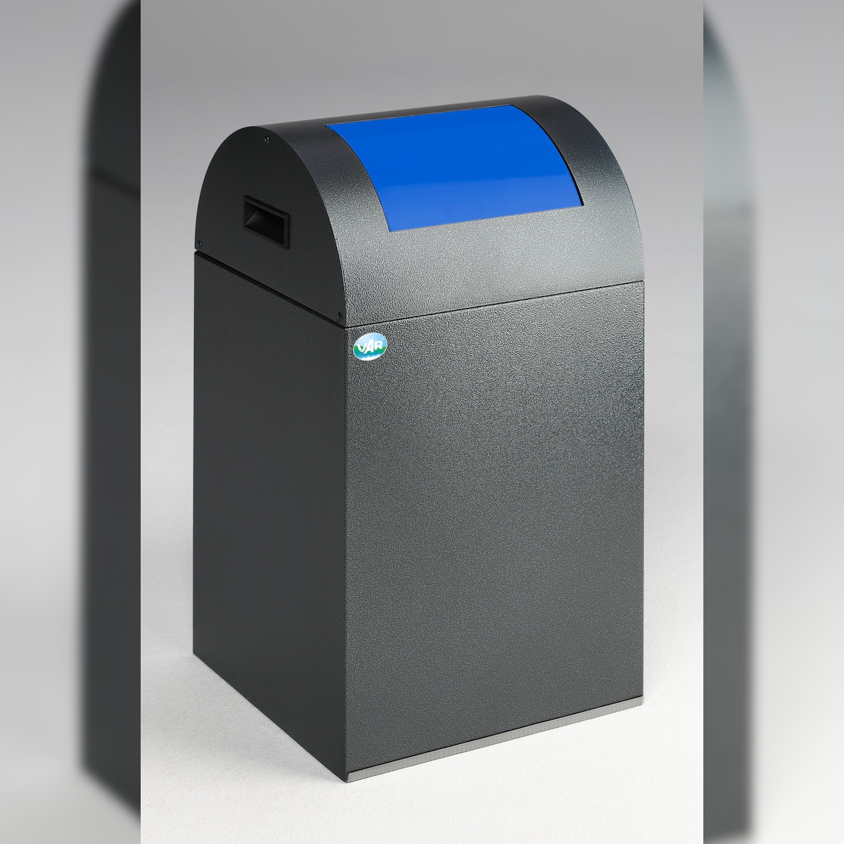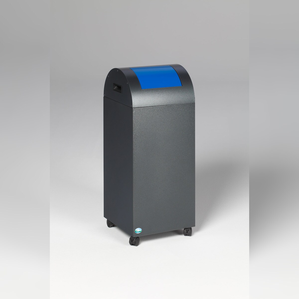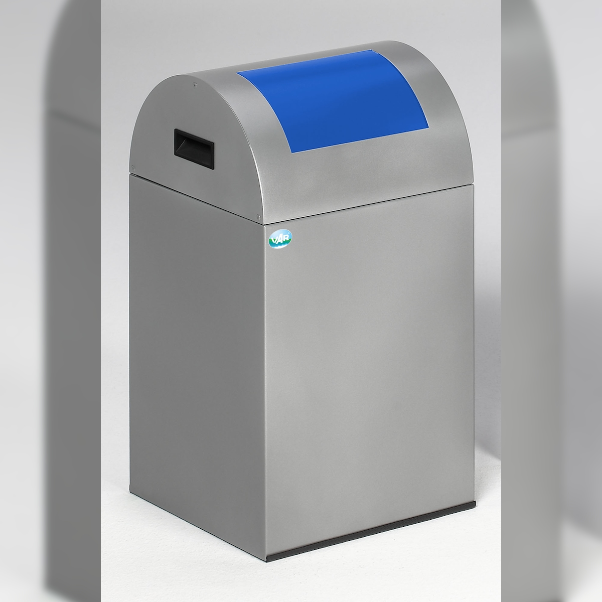 PROREGAL Selbstlöschender Wertstoffsammler rund | 43 Liter, HxBxT 60x32x32cm | Verzinkter Stahl | Grau-Blau | Mülleimer Abfalleimer
