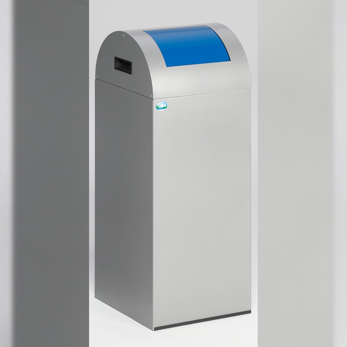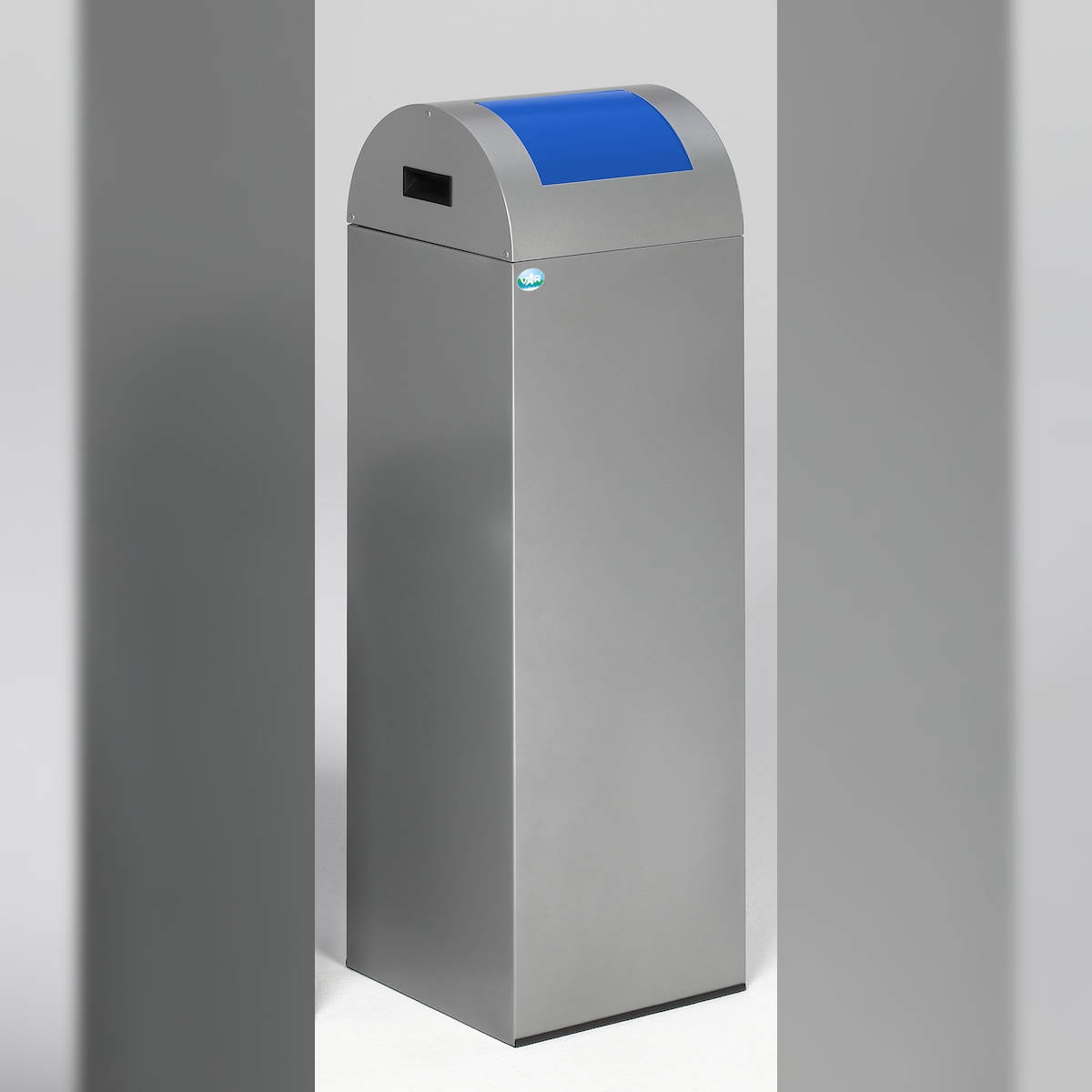 PROREGAL Selbstlöschender Wertstoffsammler rund | 89 Liter, HxBxT 104,5x32x32cm | Verzinkter Stahl | Silber-Blau | Mülleimer Abfalleimer Müllkorb