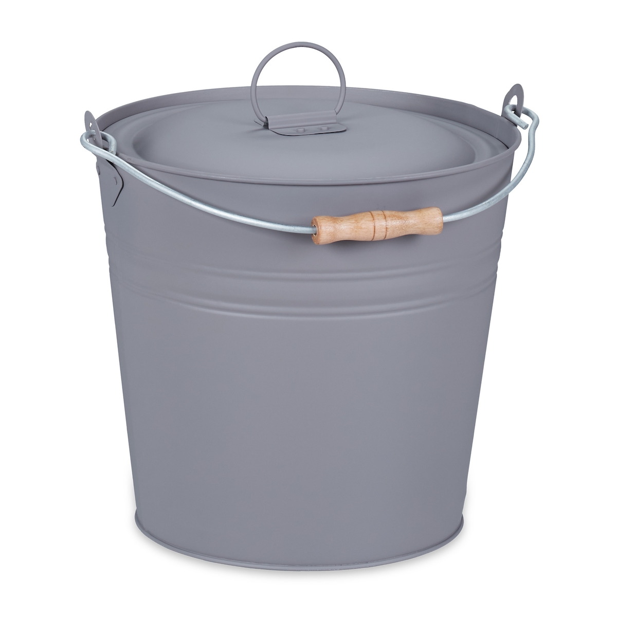 Relaxdays Ascheeimer mit Deckel, 12 Liter, Aschetonne mit Tragegriff, für Kohle & Asche, rund, Kamin, Ofen & Grill, grau