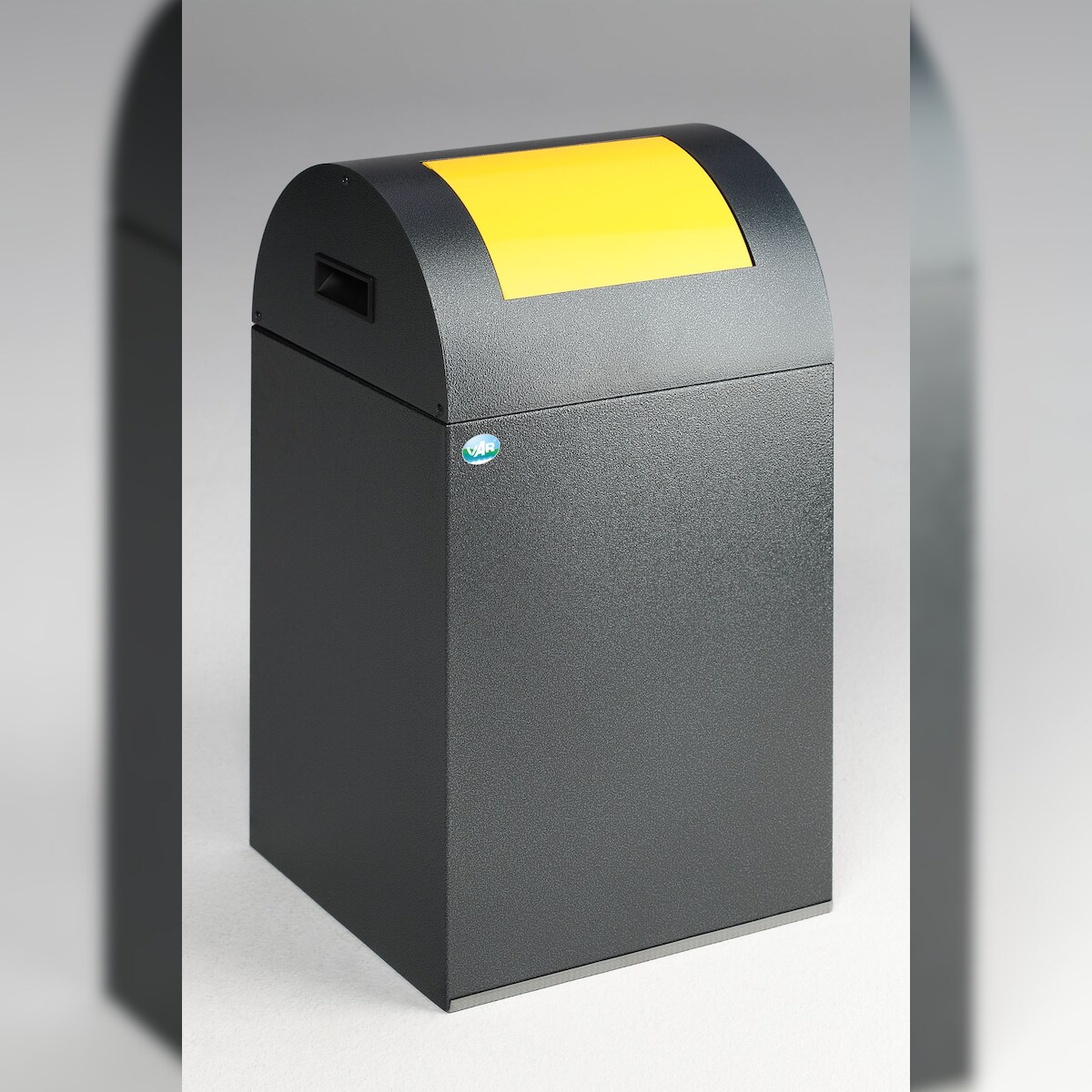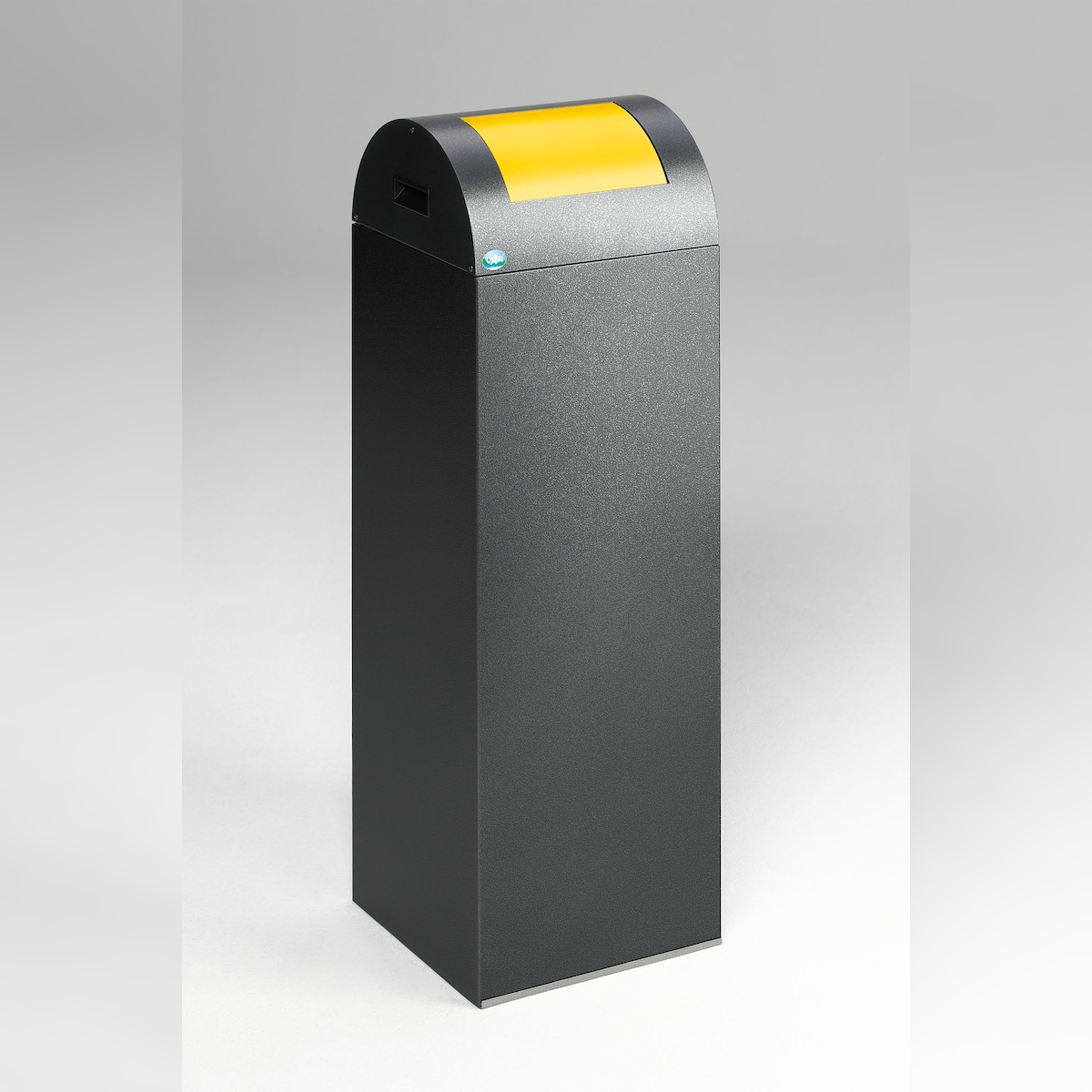 PROREGAL Selbstlöschender Wertstoffsammler rund | 43 Liter, HxBxT 60x32x32cm | Verzinkter Stahl | Grau-Gelb | Mülleimer Abfalleimer