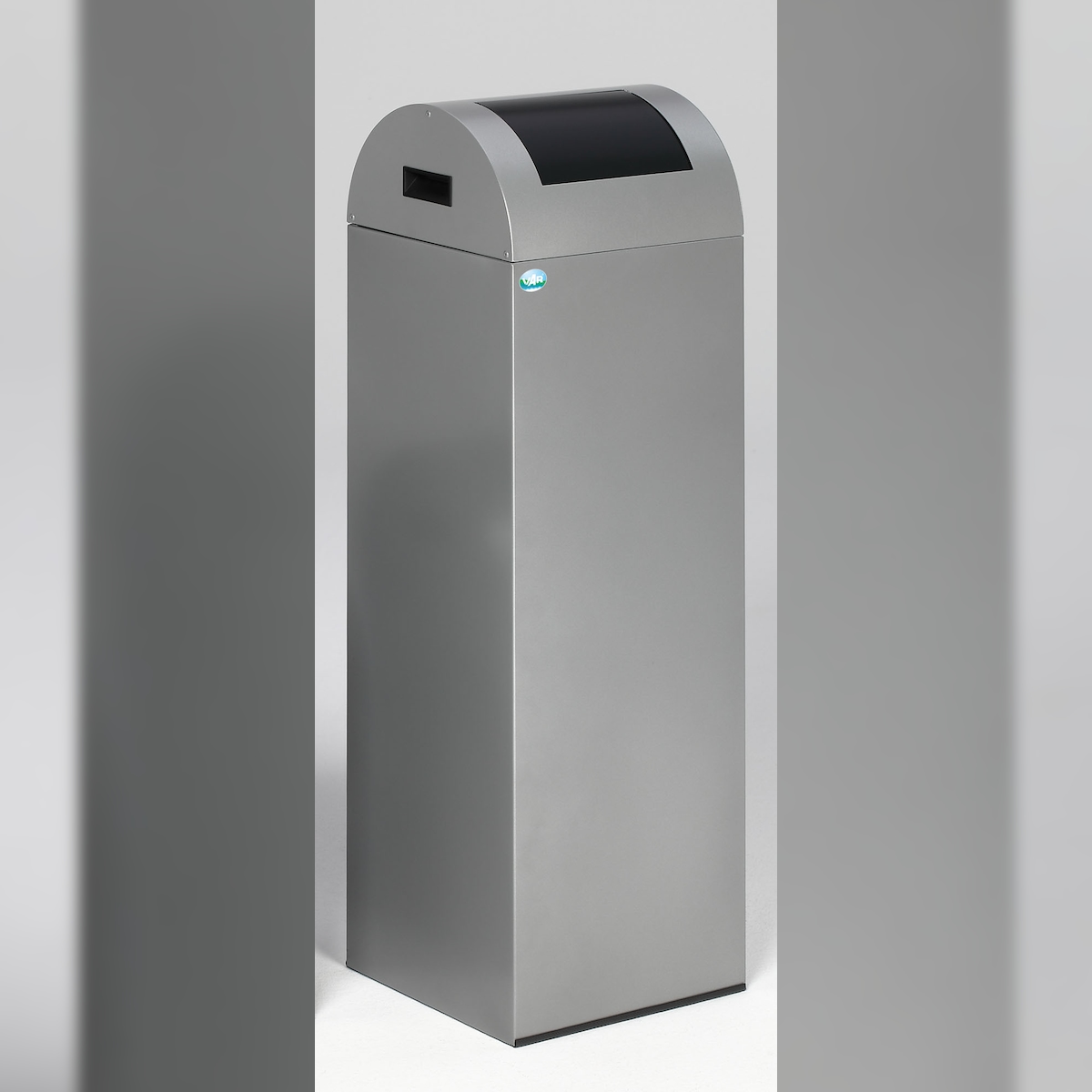 PROREGAL Selbstlöschender Wertstoffsammler rund | 60 Liter, HxBxT 80x32x32cm | Verzinkter Stahl | Silber-Anthrazit | Mülleimer Abfalleimer Müllkorb