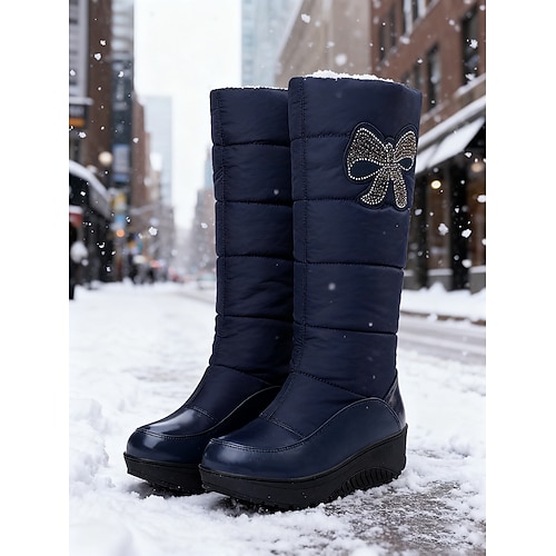 stivali invernali impermeabili trapuntati blu da donna con morbida fodera in pile: stivali da esterno isolati ed eleganti per la neve, l'escursionismo e le attività invernali