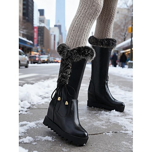 stivali con zeppa foderati in pelliccia sintetica da donna - eleganti stivali alti fino al ginocchio in pelle scamosciata per l'inverno e l'abbigliamento casual
