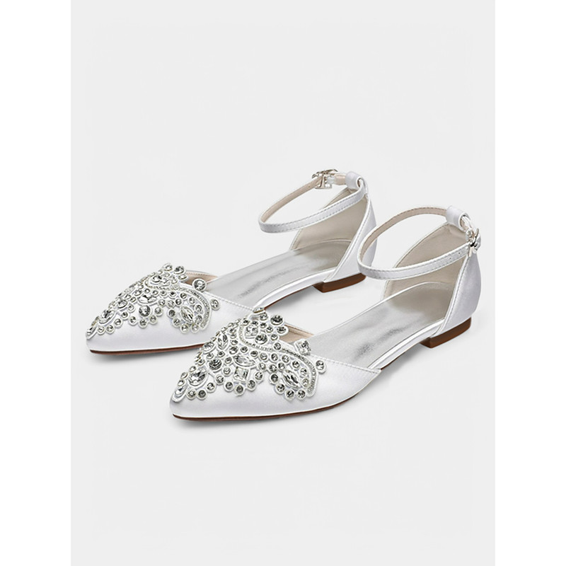 Women's Wedding Shoes Pumps Bridal Shoes Rhinestone Chunky Heel Pointed Toe Luxurious Satin Ankle Strap Wine Black White