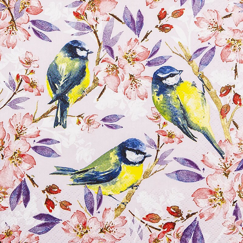 Home Fashion, Blue Tits, Lunch-Servietten aufgefaltetes Maß 33 cm x 33 cm, im Viertelfalz, 20 Stück pro Pack