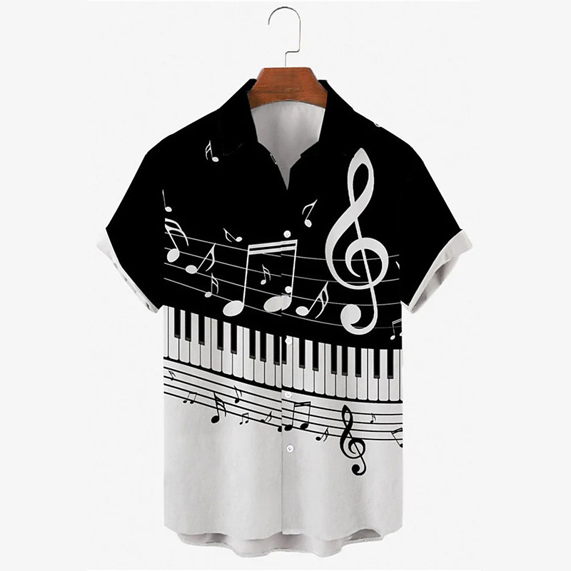 Men's Boardmasters Music Notes Shirt Button Up Shirt Short Sleeve Fashion Streetwear Designer Street Casual Daily Summer Spring Turndown Print Black Black / Brown Orange WhiteWhite Gray