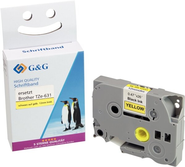 G&G Schriftband kompatibel zu Brother TZe-631, schwarz auf gelb, 12 mm x 8 m, laminiert