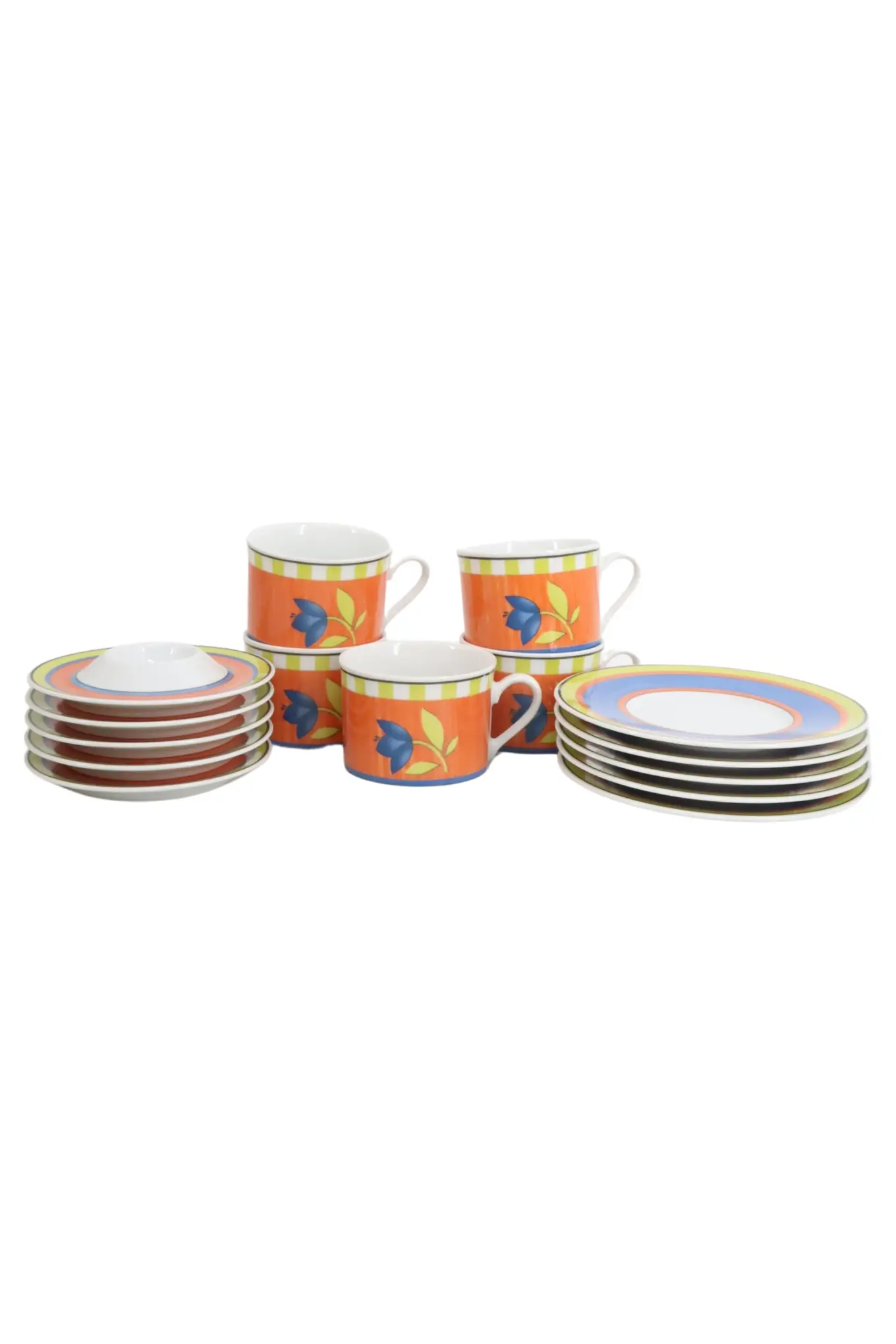 6er Set Uni bunt Espressotassen mit Untertassen bunt 80ml Steingut 6 Pers Mokka