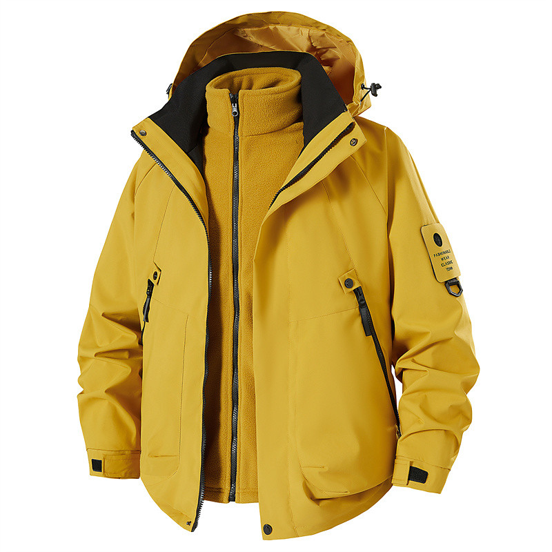 Men's Outdoor Jacket Raincoat Hiking Jacket Vacation Daily Warm Pocket 3 in 1 Fall Winter Plain Fashion Classic Hooded Regular Black Yellow Green Army Green Beige Jacket