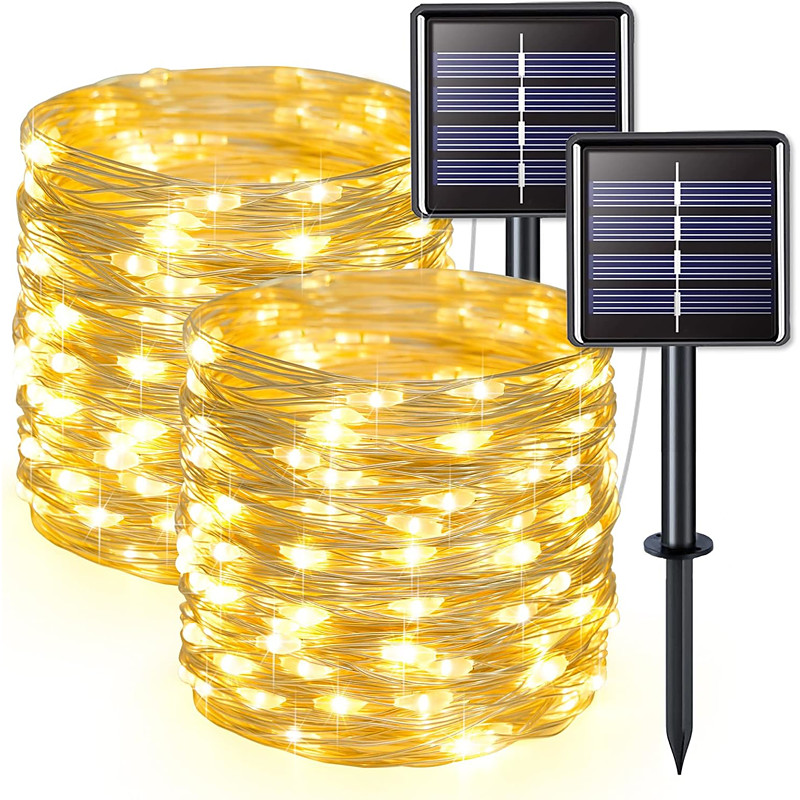 2 Pcs 10M/33FT 100 Led Beads Outdoor IP44 Waterpoof Solar Fairy String Lights Halloween, , Wedding, Valentine's Day, Courtyard, Lawn, Garden, Festive Atmosphere Decoration, Copper Wire Light
