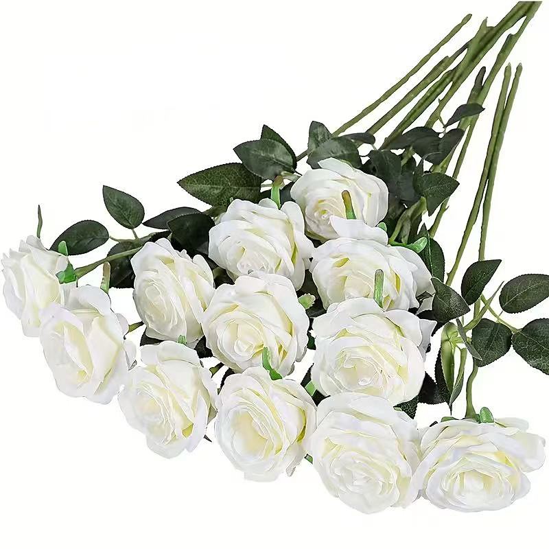 20 Branches Artificial Silk Roses, Realistic Long Stem White Rose Bouquet, Durable Faux Flowers for DIY Home Wedding Party Decor, Elegant Table Centerpieces, Multiple Colors