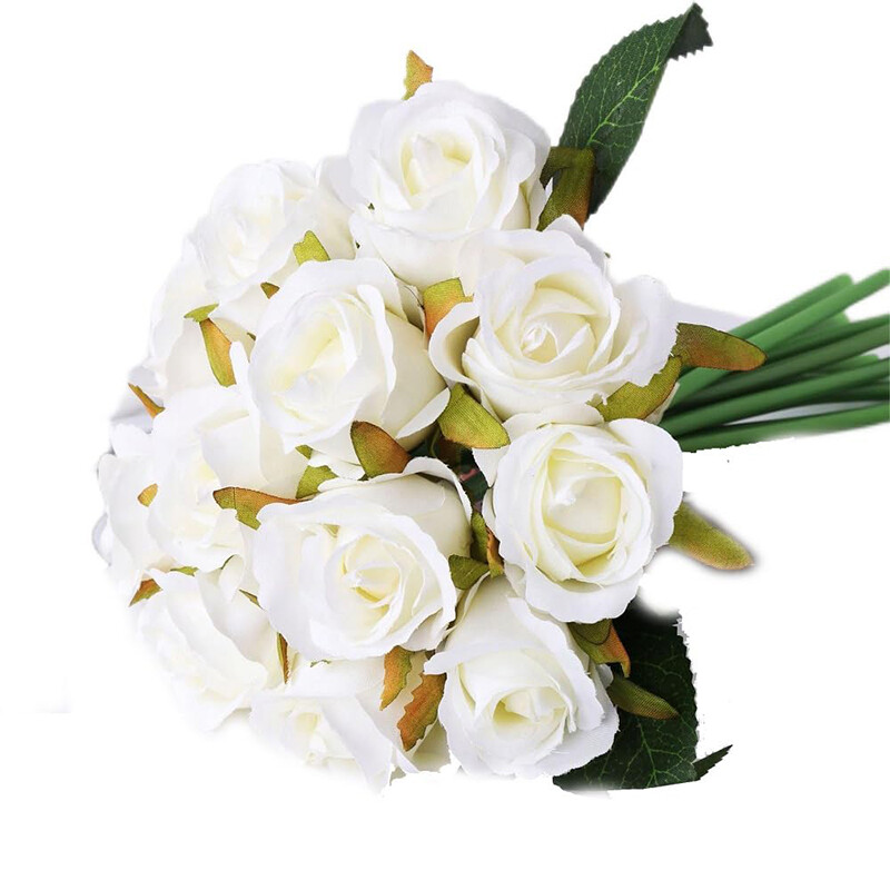 12Pcs 10.6in/26.92cm Artificial Roses Single Stem Fake Silk Flower Arrangement Bridal Bouquet Real Touch for Home Party Wedding Decoration(white)