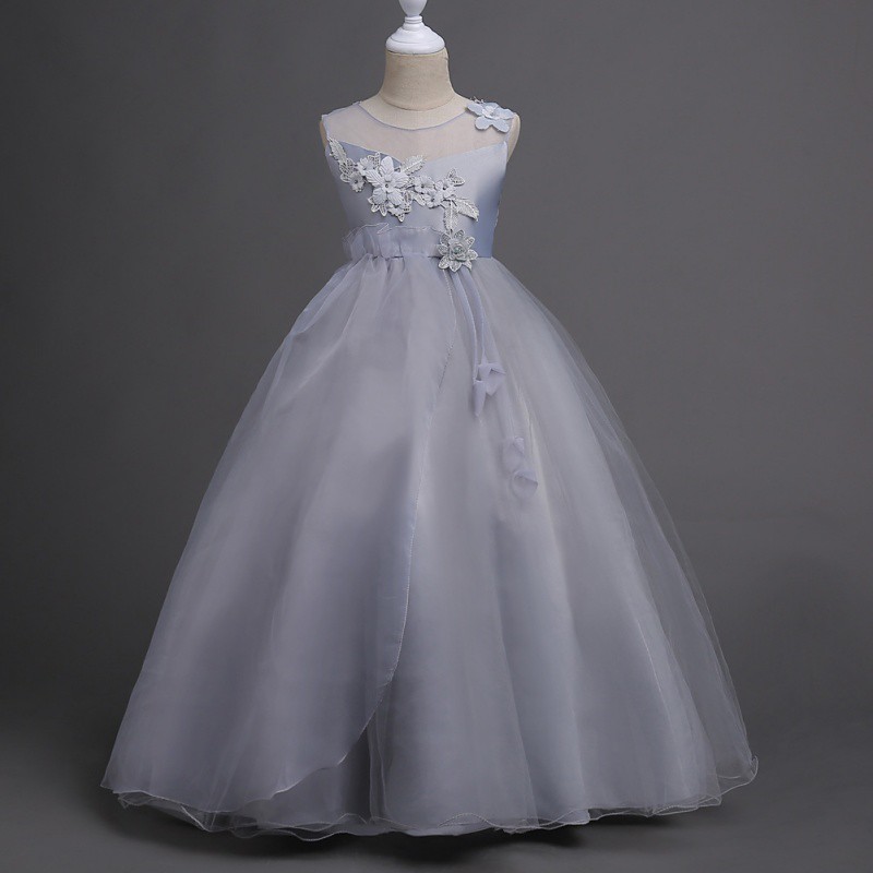 Flower Girl Dress Girls' Formal Dress Wedding Attire Party Wedding Formal Elegant Fashion Sweet First Communion Dress Lace Mesh Floral Sleeveless Crew Neck Grey White 4 years