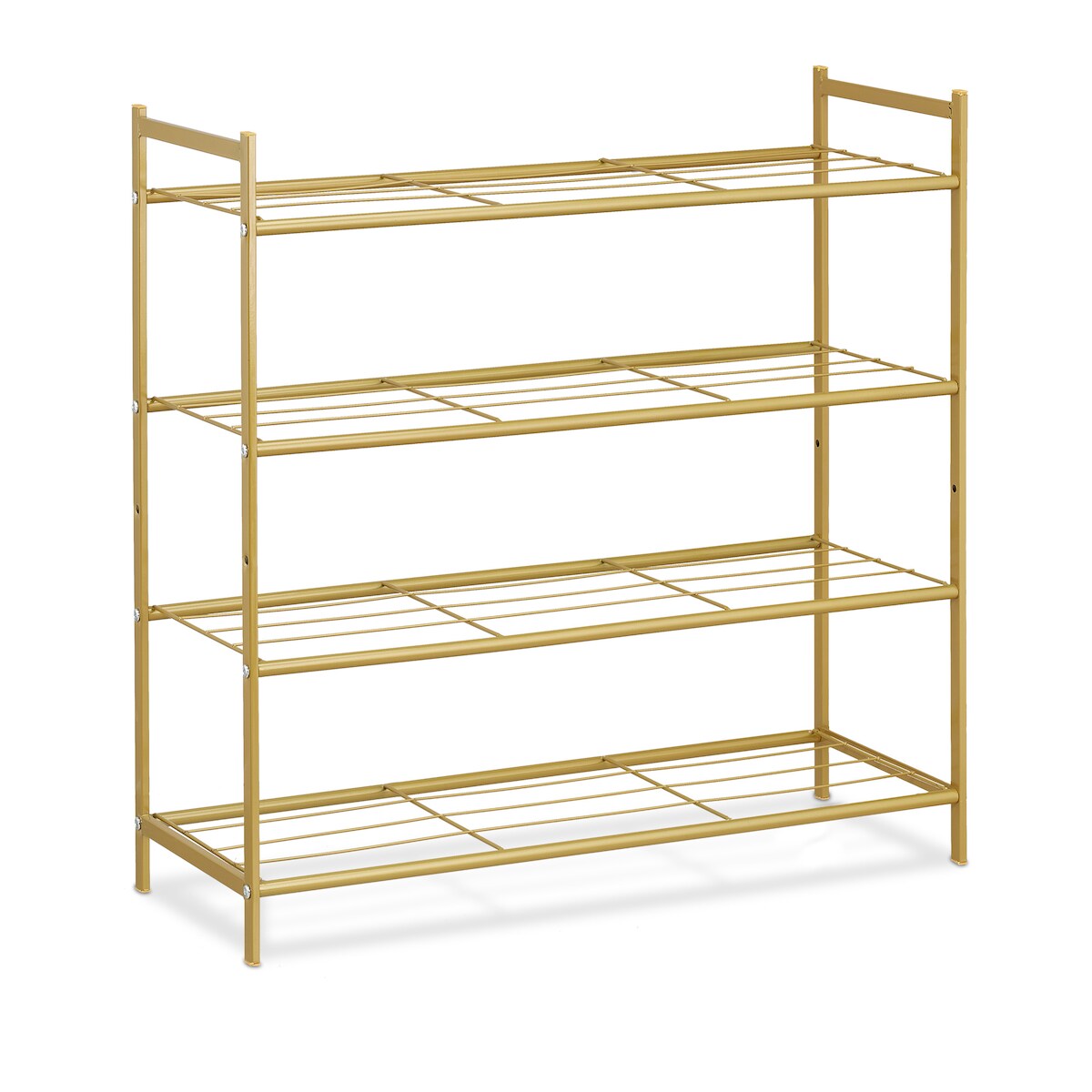 Relaxdays Schuhregal, Metall, mit 4 Ebenen, stapelbar, erweiterbar, HBT 70 x 70 x 26 cm, für bis zu 12 Paar Schuhe, gold