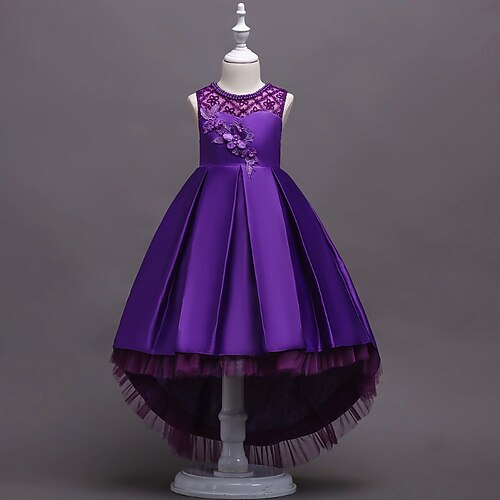 Abito da damigella d'onore bambina Ragazze Abito formale Abiti da sposa Feste Matrimonio Formale Principessa Patchwork Rete Floreale Senza Maniche Girocollo Blu Grigio Dai 4 anni in su
