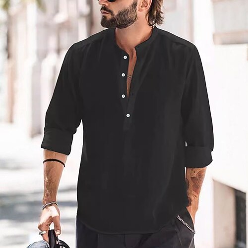 Per uomo Camicia Camicia popover Camicia Estiva Camicia casual Camicia da Spiaggia Nero Bianco Vino Verde scuro Kaki Manica Lunga Semplice Colletto alla coreana Vacanza Camicia hawaiana Abbigliamento