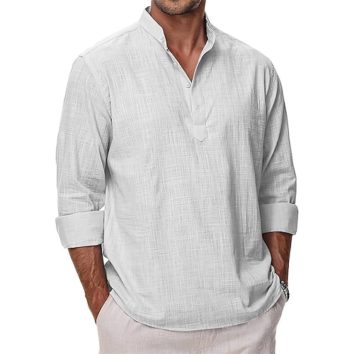 Per uomo Camicia Camicia con colletto cinese Camicia con colletto alla coreana Camicia popover Camicia estiva Maglietta informale Bianco Rosa Verde Kaki Azzurro Manica lunga Liscio Colletto Da mare