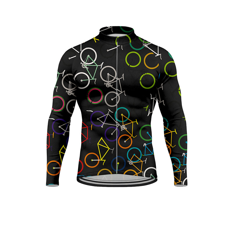 Men's Tops Cycling Jersey Graphic Geometric Bicycle Long Sleeve Bike Jersey Top with 3 Rear Pockets Sun Sun Protection Sunscreen Quick Dry Sports Black Clothing Apparel