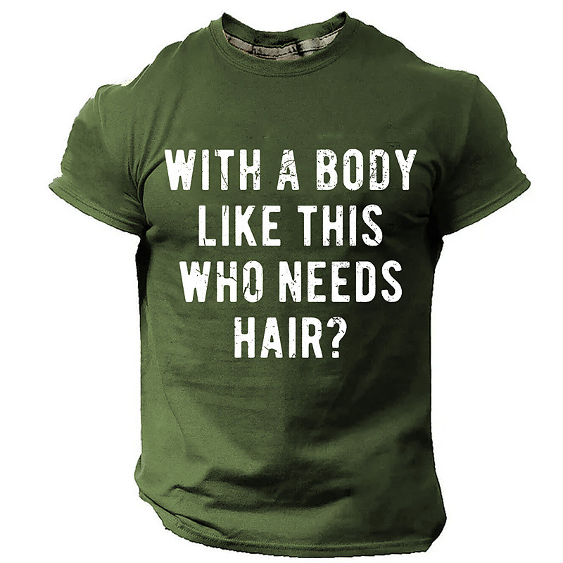Mens Short Sleeve T-Shirt: Funny 'With A Body Like This Who Needs Hair?' Graphic Tee, Humorous Lifestyle Top