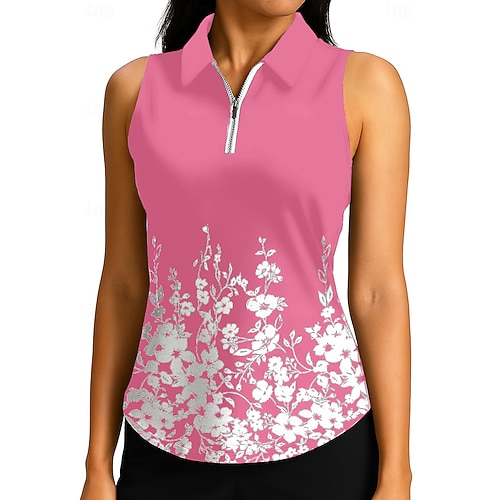 Per donna Piante Floreale Top Maglietta sportiva Polo da golf Maglia da tennis Senza Maniche Cerniera Alta elasticità Traspirante Tennis Pickleball Corsa Collo ripiegato Collo con zip Maglietta