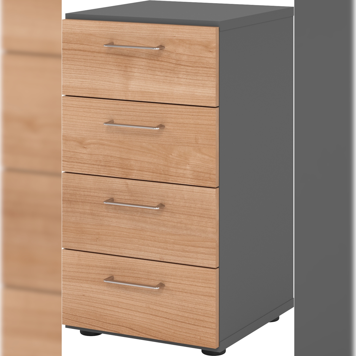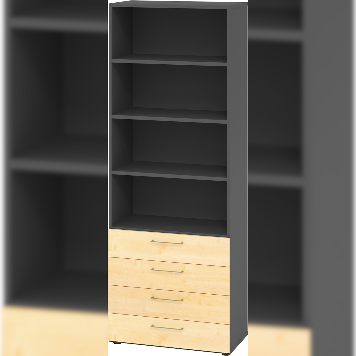 bümö smart Schubladenschrank, Büroschrank 80cm breit in Graphit/Ahorn mit 4 Schüben & 4 Regalfächern - Bürocontainer aus Holz, Container mit