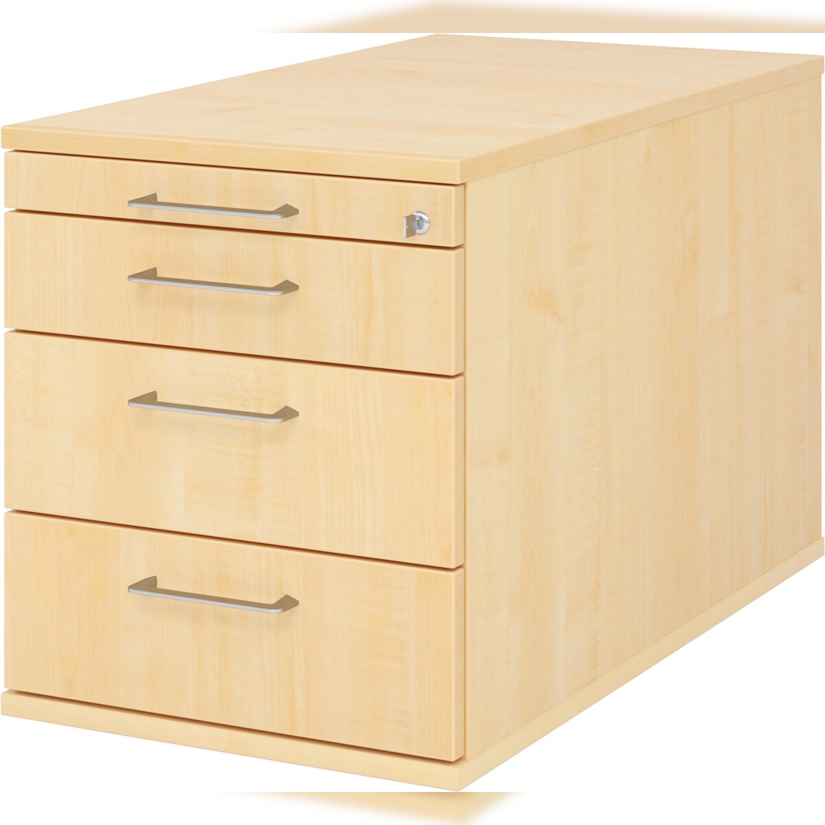 bümö Rollcontainer mit Schubladen, Container abschließbar aus Holz in Ahorn - Rollwagen für's Büro als Schreibtisch Unterschrank, Bürocontainer od.