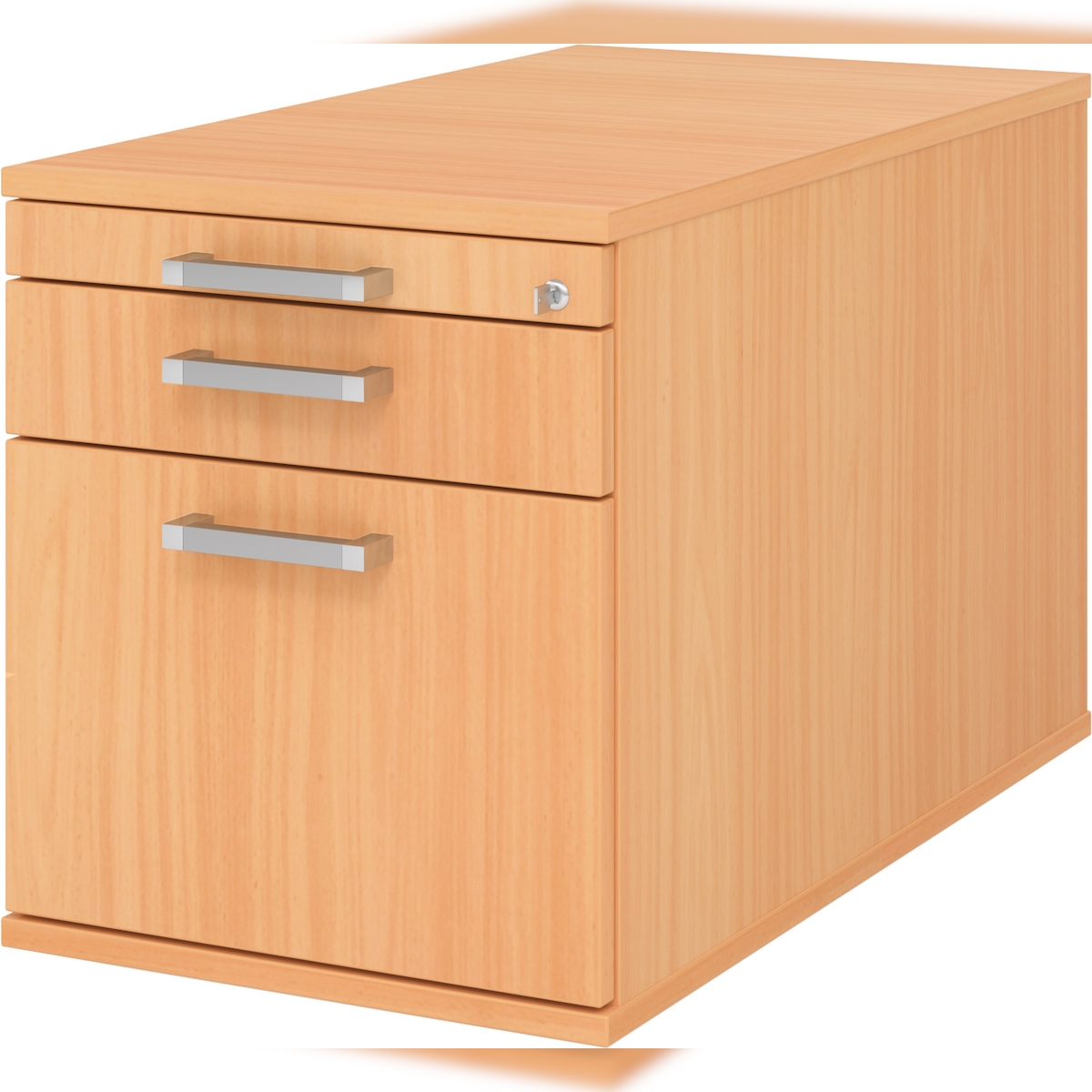 bümö Rollcontainer mit Hängeregister für Hängeordner, Container abschließbar in Buche - Rollwagen mit Hängeregistratur als Schreibtisch Unterschrank