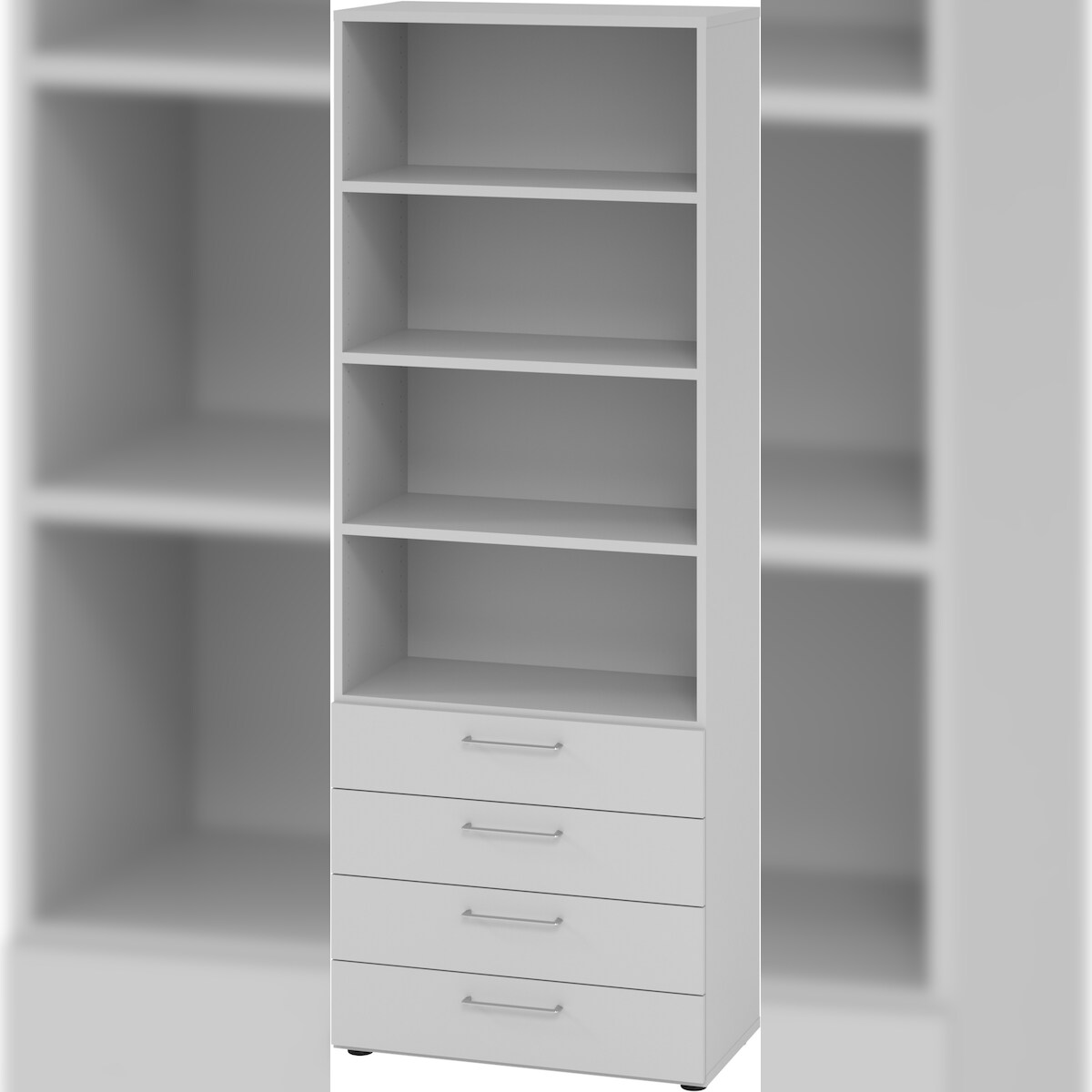 bümö smart Schubladenschrank, Büroschrank 80cm breit in grau mit 4 Schüben & 4 Regalfächern - Bürocontainer aus Holz, Container mit Metallgriffen &