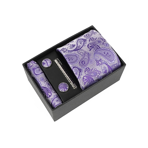 set regalo da uomo con cravatta paisley in poliestere, gemelli, fazzoletto da taschino e fermacravatta, perfetto per matrimoni e regali
