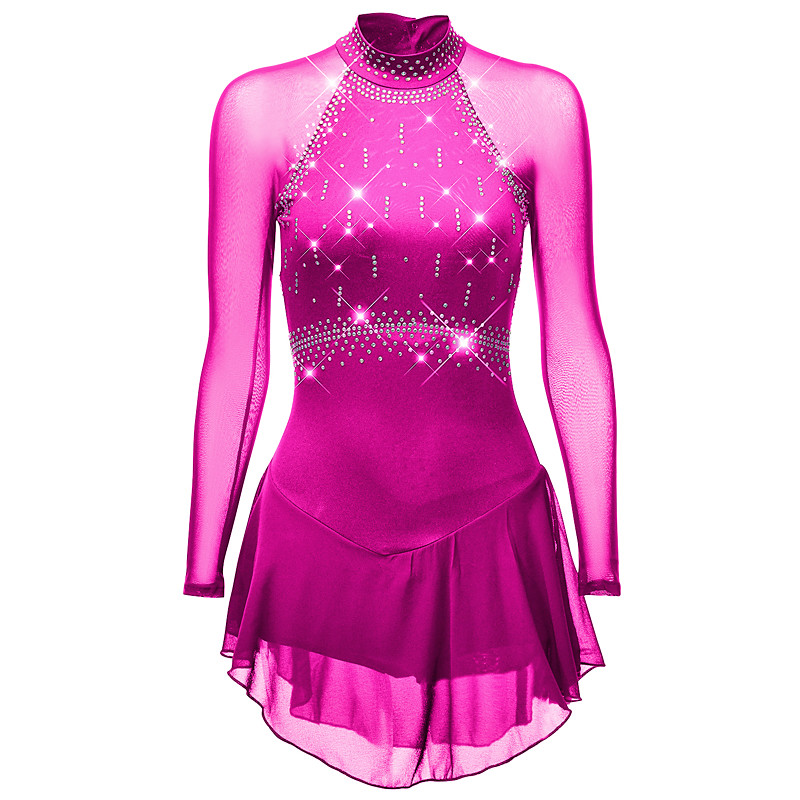 Figure Skating Dress Women's Girls' Ice Skating Dress Black Purple Rosy Pink Spandex High Elasticity Training Competition Skating Wear Handmade Crystal / Rhinestone Long Sleeve Ice Skating Figure