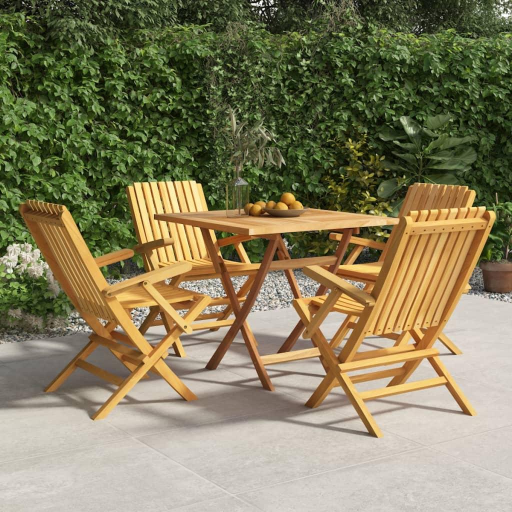 Spisebordssæt til haven 5 dele massivt teaktræ