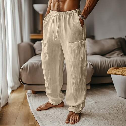 Per uomo Pantaloni di Lino Pantaloni Pantaloni Estivi Pantaloni da Spiaggia Coulisse Elastico in vita Gamba Dritta Semplice Comodità Traspirante Lunghezza intera Casuale Quotidiano Ferie Moda Stile