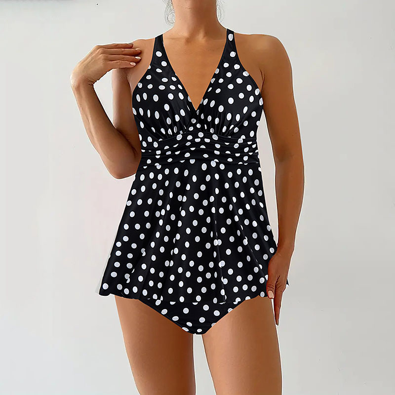 Women's Swimwear 2 Piece Shorts Swimsuit Backless Vacation Beach Wear Polka Dot V Neck Sleeveless Bathing Suits