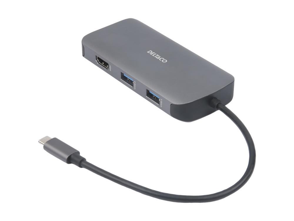 DELTACO USBC-HDMI25 - Dokkingstasjon - USB-C - HDMI, VGA - 1GbE