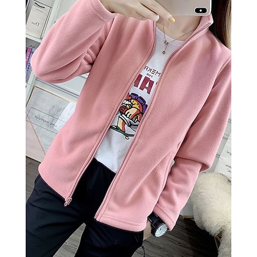 Damen Wanderjacke Fleecejacke Wintermantel Außen Thermik Warm Wanderoutfits Wanderbekleidung Winter Herbst Jacke Jagd Klettern Laufen Einfarbig Schwarz Rosa Dunkellila