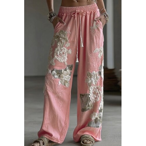 Per donna Culotte Gamba Larga Gamba larga Vacanza Vintage Stile Etnico Lunghezza intera Vita Alta Floreale Grafico Asciugatura Rapida Traspirabilità Morbido Inelastico Formale All'aperto Vacanza