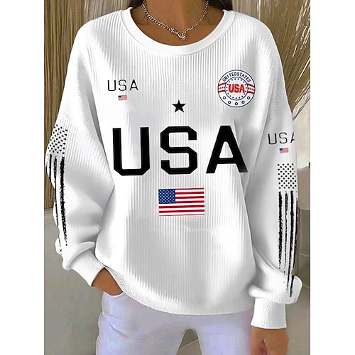Maglietta Patriottica Giorno dell'Indipendenza Felpa Texture per Donne Maglione Grafica Lettera Casual Maniche Lunghe Collo Giro Regolare
