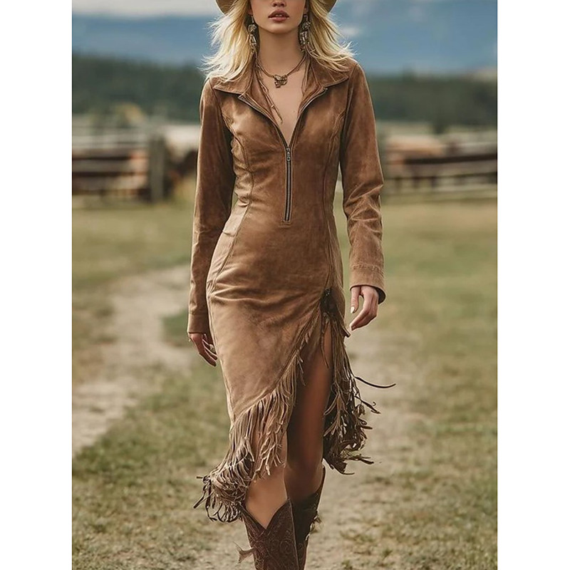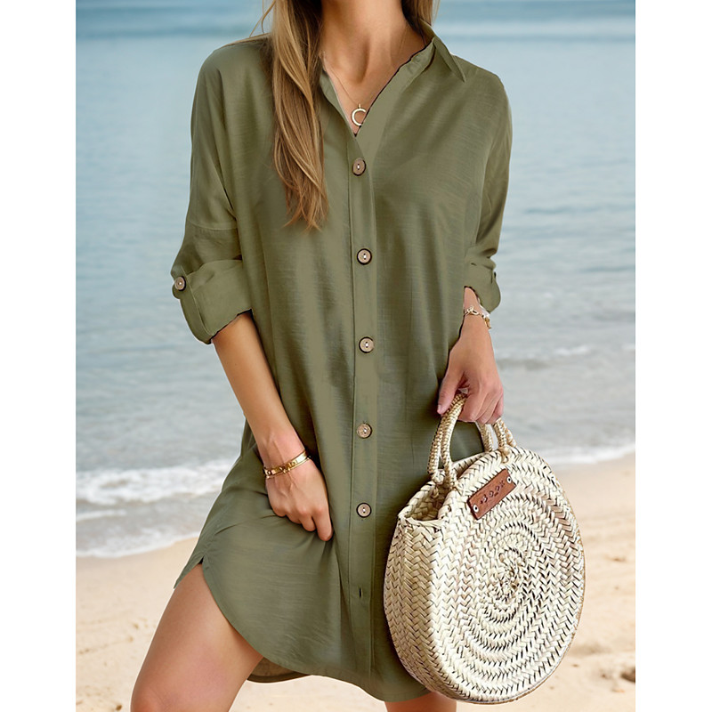 Women's Mini Dress Sheath Dress Vacation Casual Boho Daily Holiday Date Plain Long Sleeve Lapel Black Light Brown