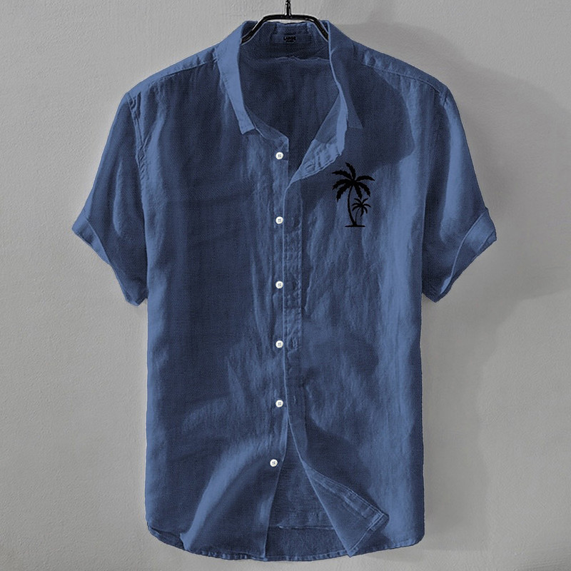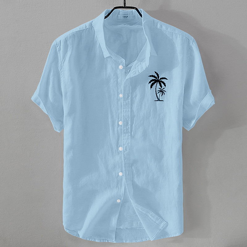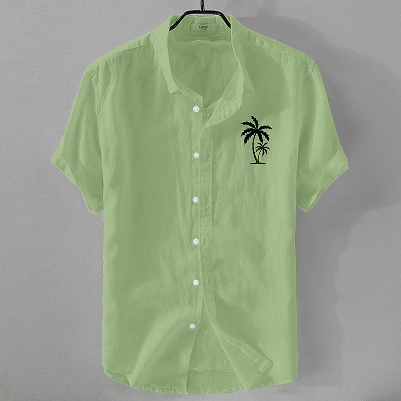 Men's Linen Shirt Minimalist Aloha Shirt Casual Shirt Cotton Linen Shirt Button Up Shirt Coconut Tree Vacation Street Black White Pink Dark Navy Short Sleeve Lapel Summer Clothing Apparel Button-Down