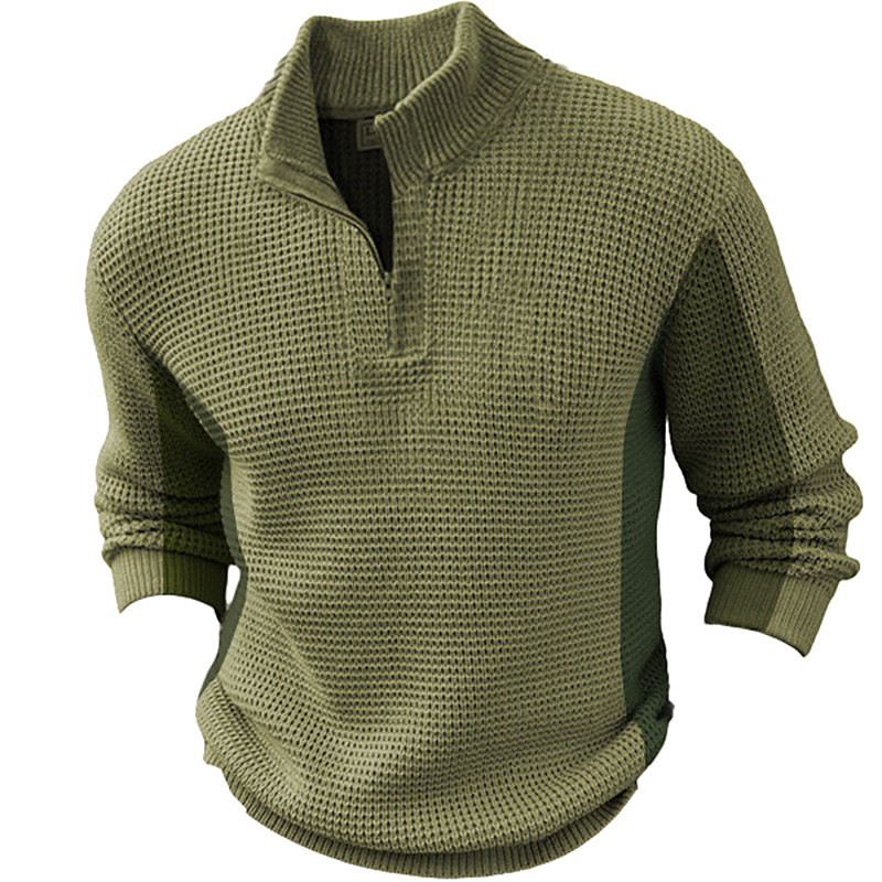 Men's Sweater Cardigan Sweater Jacket Blazer Waffle Knit Stand Collar Cropped Knitted Solid Color Long Sleeve Basic Stylish Outdoor Daily Clothing Apparel Fall Winter Blue Khaki S M L