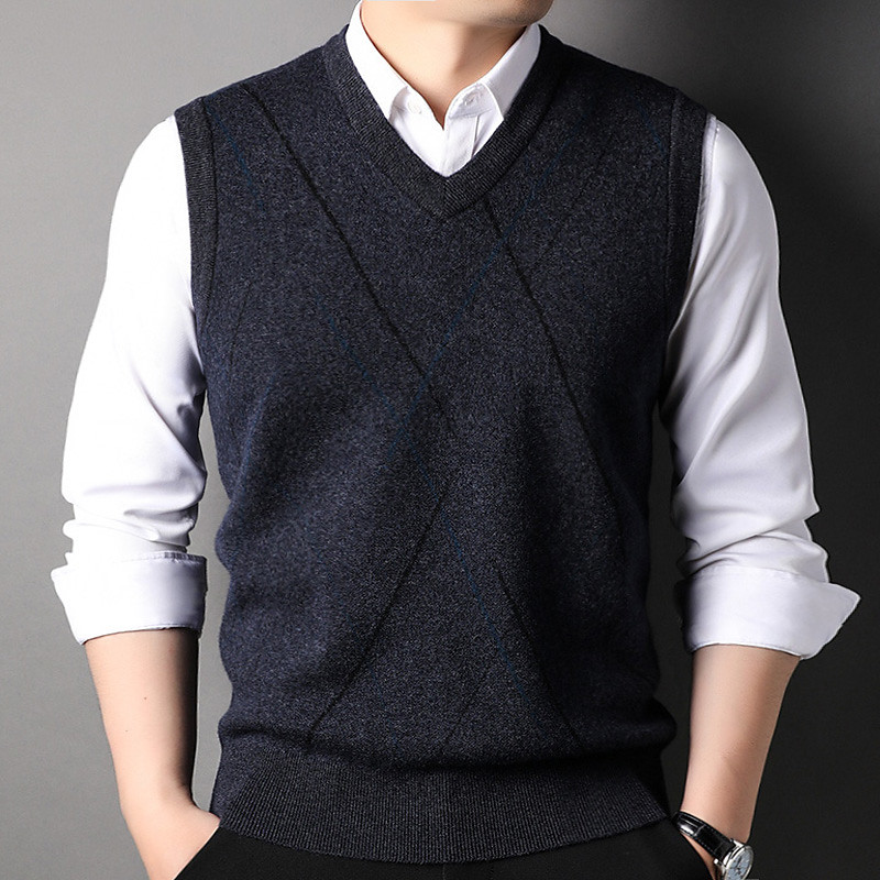Men's 100% Wool Sweater Vest Knit V Neck Stripe Reactive Print V Neck Knitwear Elegant School Performance Clothing Apparel Spring Fall Black Royal Blue S M L