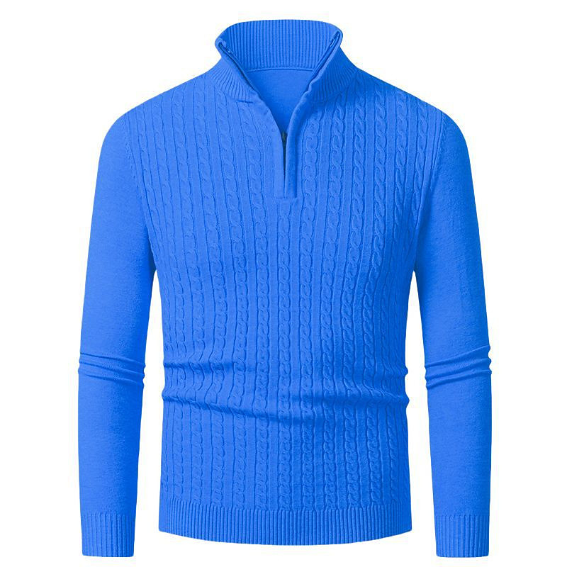 Men's Pullover Sweater Jumper Zip Sweater Knitwear Ribbed Knit Zipper Knitting Faith Quarter Zip Retro Vintage Outdoor Daily Clothing Apparel Fall Winter Royal Blue Brown S M L