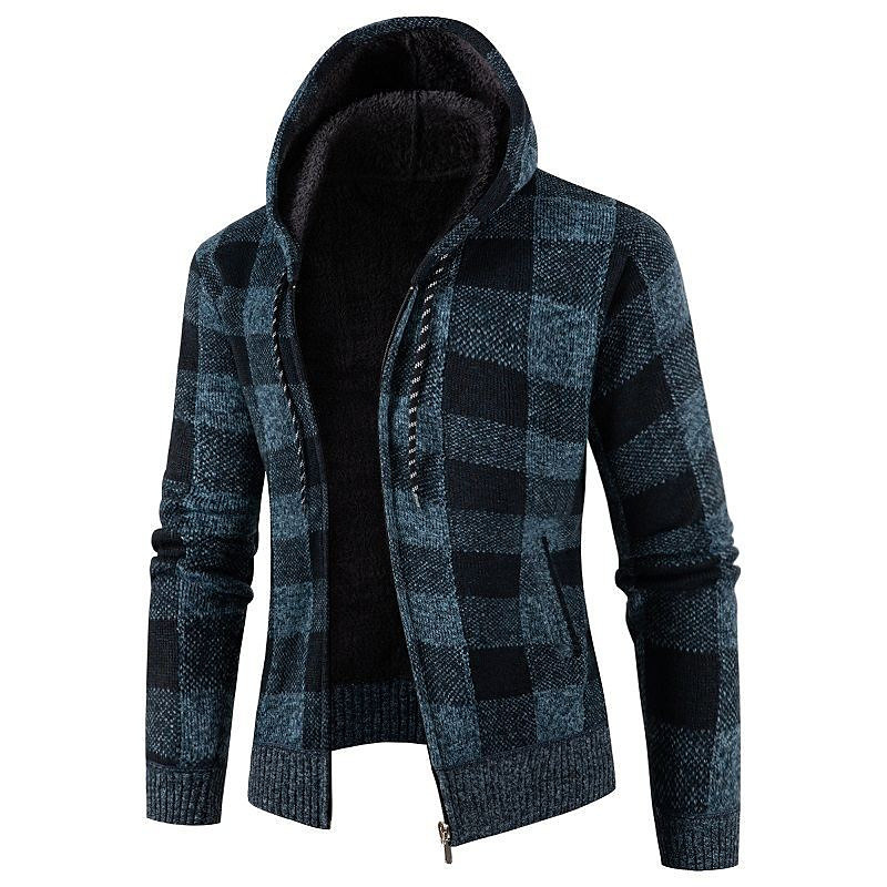Men's Cardigan Sweater Cropped Sweater Zip Sweater Knit Sweater Ribbed Knit Regular Tops Knitted Plaid Hooded Fashion Classic Vacation Daily Wear Clothing Apparel Fall Winter Red Navy Blue M L XL