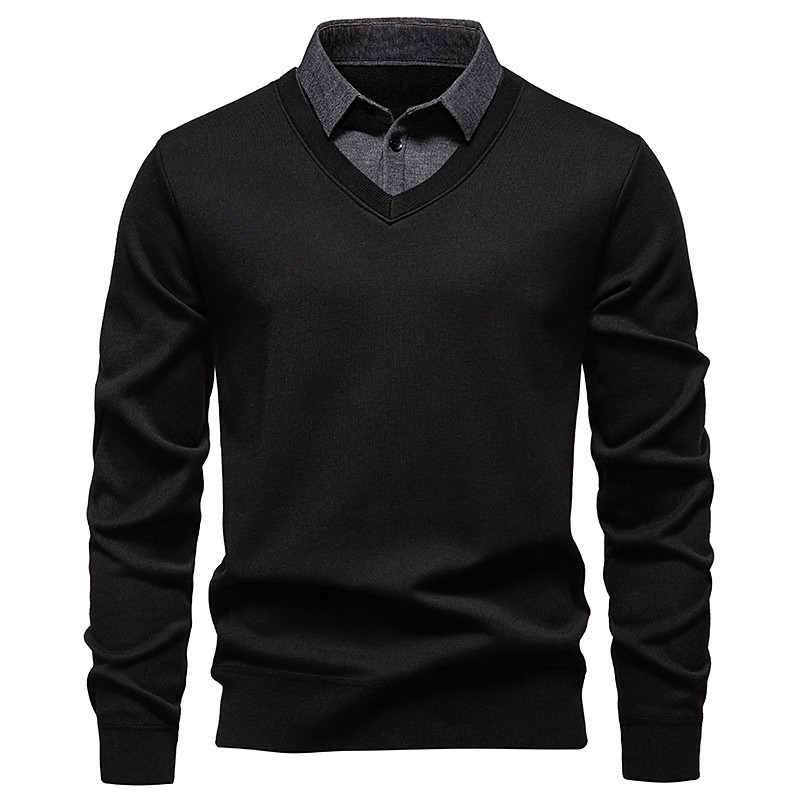 Men's Sweater Pullover Sweater Jumper Ribbed Knit Regular Tops 2 in 1 Knitted Plain Turndown Knitwear Contemporary Casual Daily Wear Clothing Apparel Spring Fall Black Navy Blue M L XL