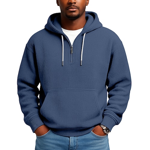 Per uomo Felpa con cappuccio Felpa con cappuccio a nido d'ape Felpa con cappuccio e zip corta Blu marino Grigio chiaro Grigio scuro Azzurro Con Cappuccio Semplice Tasca a marsupio Testurizzato Sport