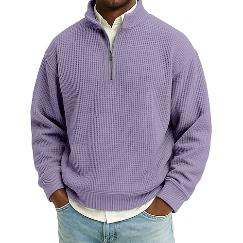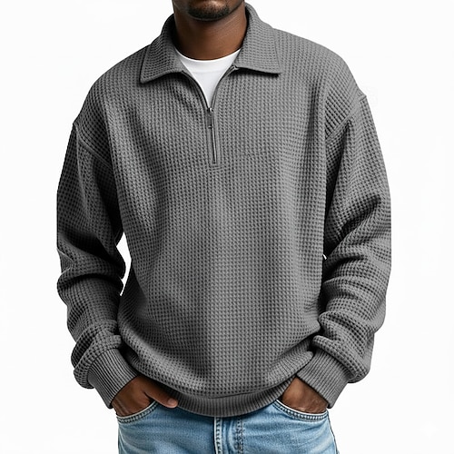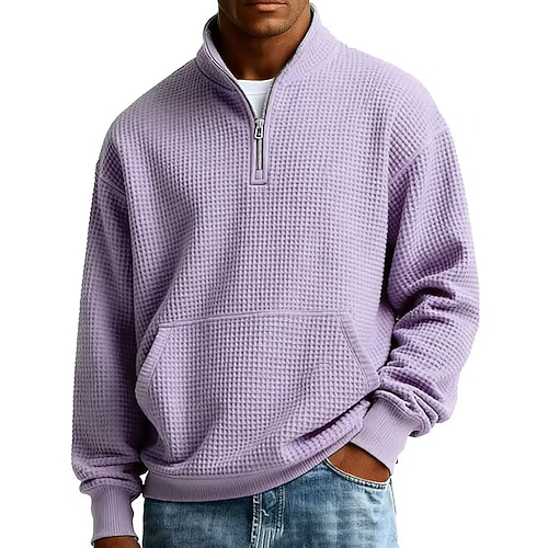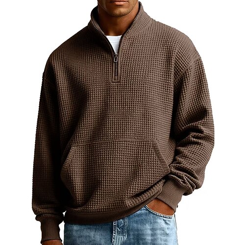 Per uomo Maglia Felpa a nido d'ape Maglione Felpa con zip corta Aalbicocca Nero Bianco Verde chiaro Borgogna Colletto Mao Semplice Tasca a marsupio Testurizzato Casuale Quotidiano Sport Outdoor