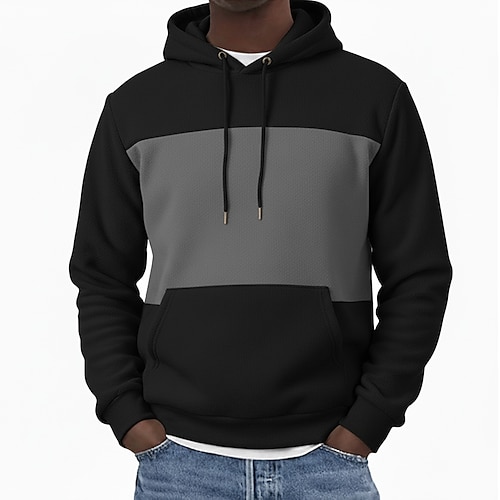 Per uomo Felpa con cappuccio Felpa con cappuccio in pile Felpa con cappuccio foderata in pile Nero Rosa Verde Caffè Grigio Con Cappuccio Semplice Patchwork Blocco di colore Tasca a marsupio Sport